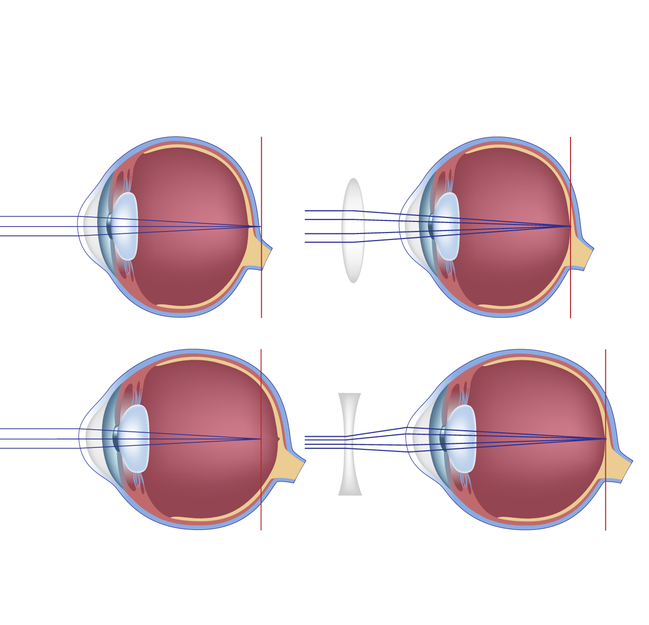 Bei einer Kurzsichtigkeit ist das Auge zu lange gewachsen, weshalb die Hornhaut und Linse des Auges zu weit von der Netzhaut entfernt liegen. Das Licht fällt somit vor und nicht auf die Netzhaut. Kurzsichtige können somit näher gelegene Objekte scharf erkennen, weiter entfernte Objekte erscheinen allerdings verschwommen.