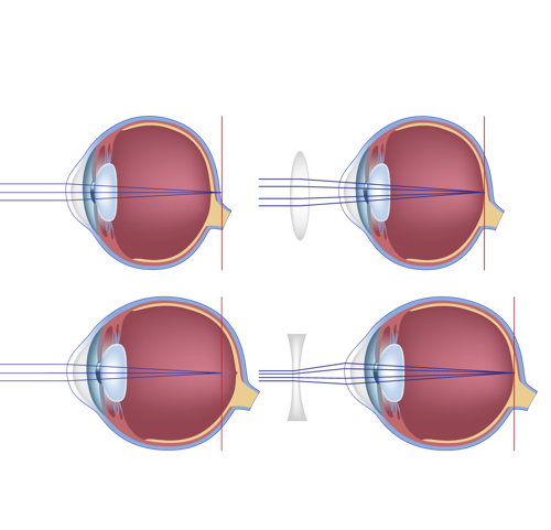 Bei einer Kurzsichtigkeit ist das Auge zu lange gewachsen, weshalb die Hornhaut und Linse des Auges zu weit von der Netzhaut entfernt liegen. Das Licht fällt somit vor und nicht auf die Netzhaut. Kurzsichtige können somit näher gelegene Objekte scharf erkennen, weiter entfernte Objekte erscheinen allerdings verschwommen.